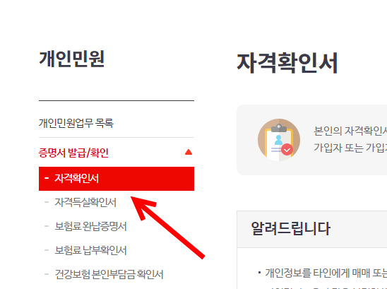 국민건강보험 공단 홈페이지에서 자격조회하기