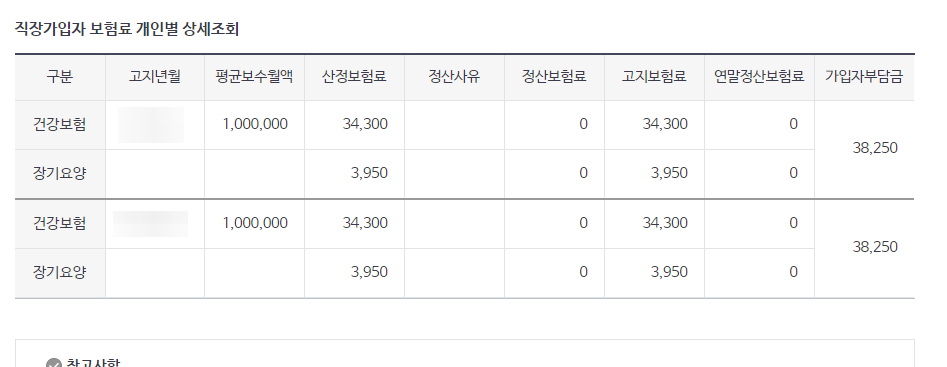 5)직장보험료의 가입자부담금(건강보험료+장기요양보험료)을 확인할수있다.